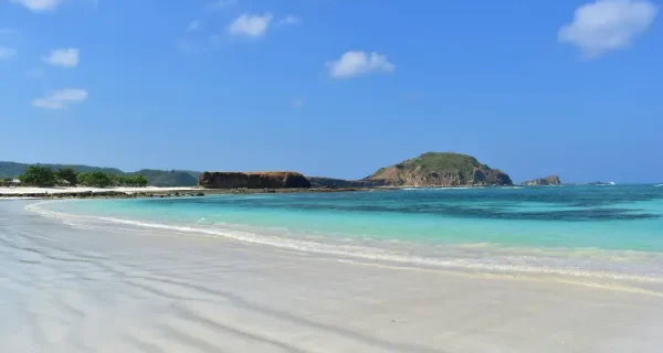 Pantai dengan pasir putih lembut berbentuk “butiran merica” dan laut biru jernih. Tanjung Aan Beach Lombok cocok untuk berenang, snorkeling, atau sekadar menikmati panorama Mandalika.